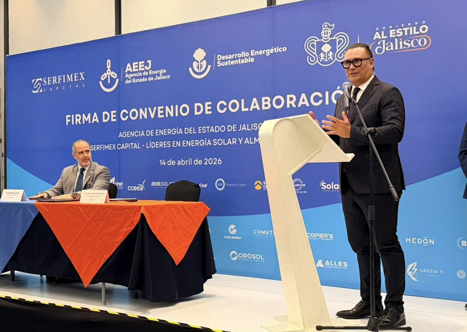 La Agencia de Energía del Estado de Jalisco y Serfimex Capital firmaron un convenio de colaboración con el objetivo de fortalecer la transición energética en los sectores industrial, comercial y hotelero, con el que se otorgarán líneas de financiamiento a integradores a partir 1 millón y hasta 0.7 MW en sistemas fotovoltaicos y sin límite en financiamiento de sistemas BESS.