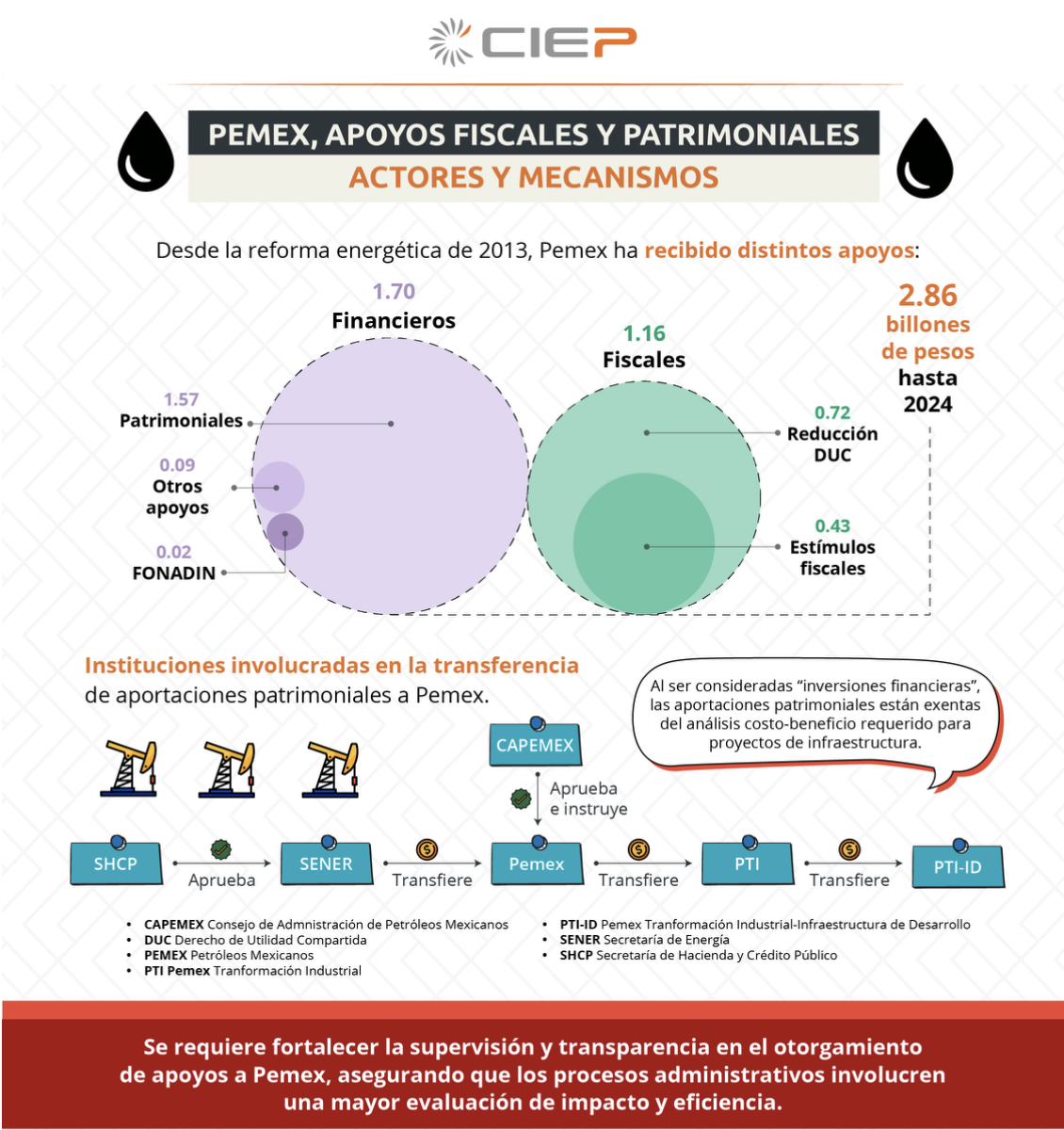 La dependencia de la empresa a dichos apoyos podría comprometer otros rubros prioritarios del gasto público. Ante las recientes propuestas de cambios en las leyes secundarias del sector energético, existe una oportunidad única para revisar y fortalecer los mecanismos de supervisión, asegurando que los apoyos contribuyan efectivamente a la estabilidad operativa y financiera de Pemex sin comprometer la sostenibilidad fiscal del país.
