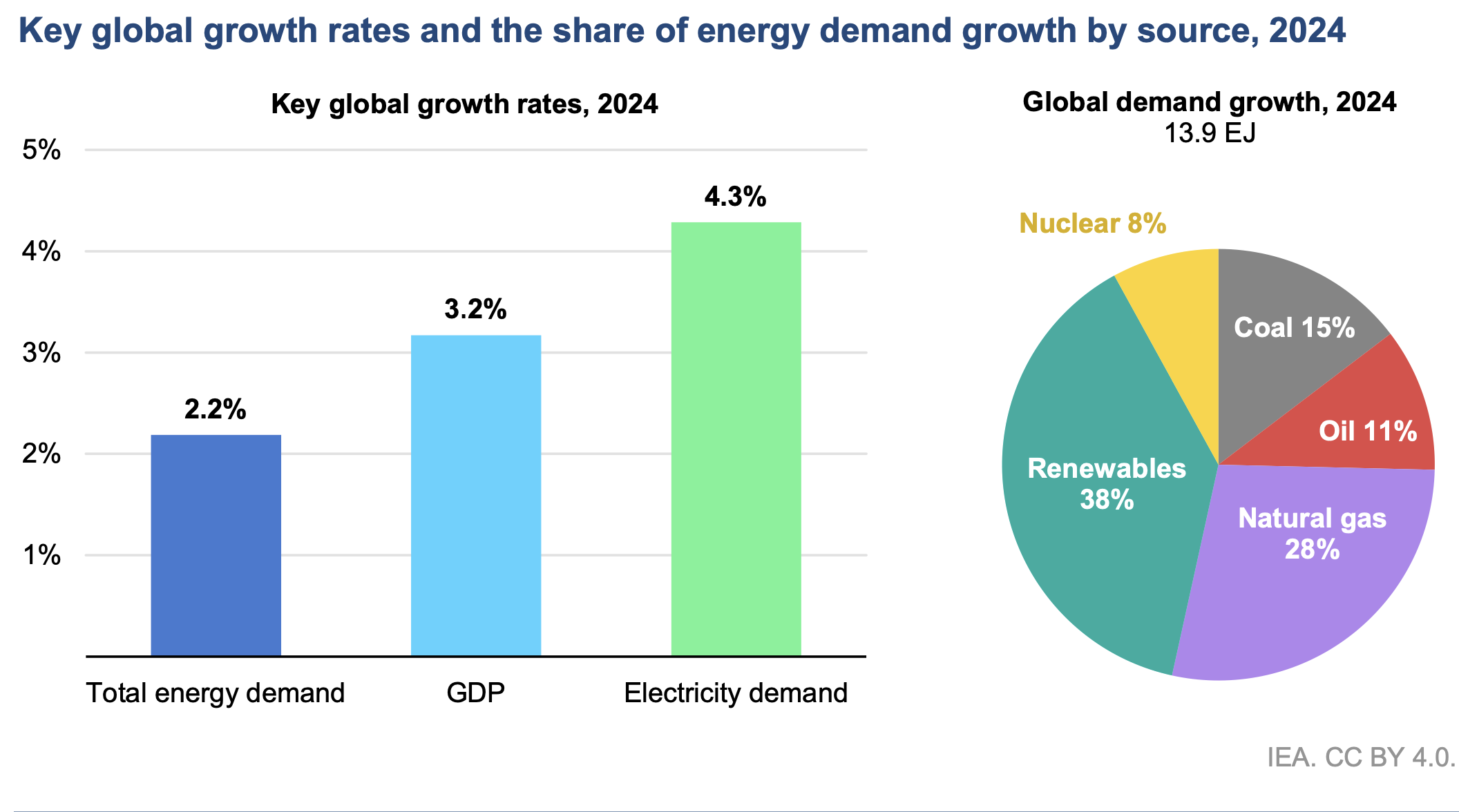 El informe revela que la demanda mundial de energía aumentó un 2.2 % el año pasado, más bajo que el crecimiento del PIB del 3.2 %, pero considerablemente más rápido que el aumento promedio anual de la demanda del 1.3 % entre 2013 y 2023.