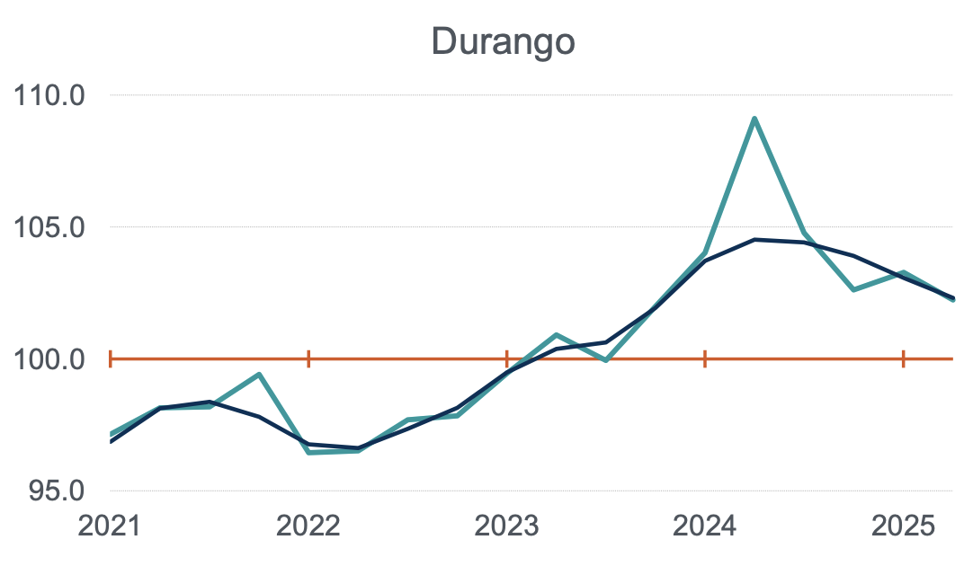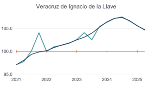 En el escenario negativo, Veracruz, Durango y Chihuahua, hacen equipo como las entidades con dos trimestre consecutivos con caídas consecutivas en 2025.