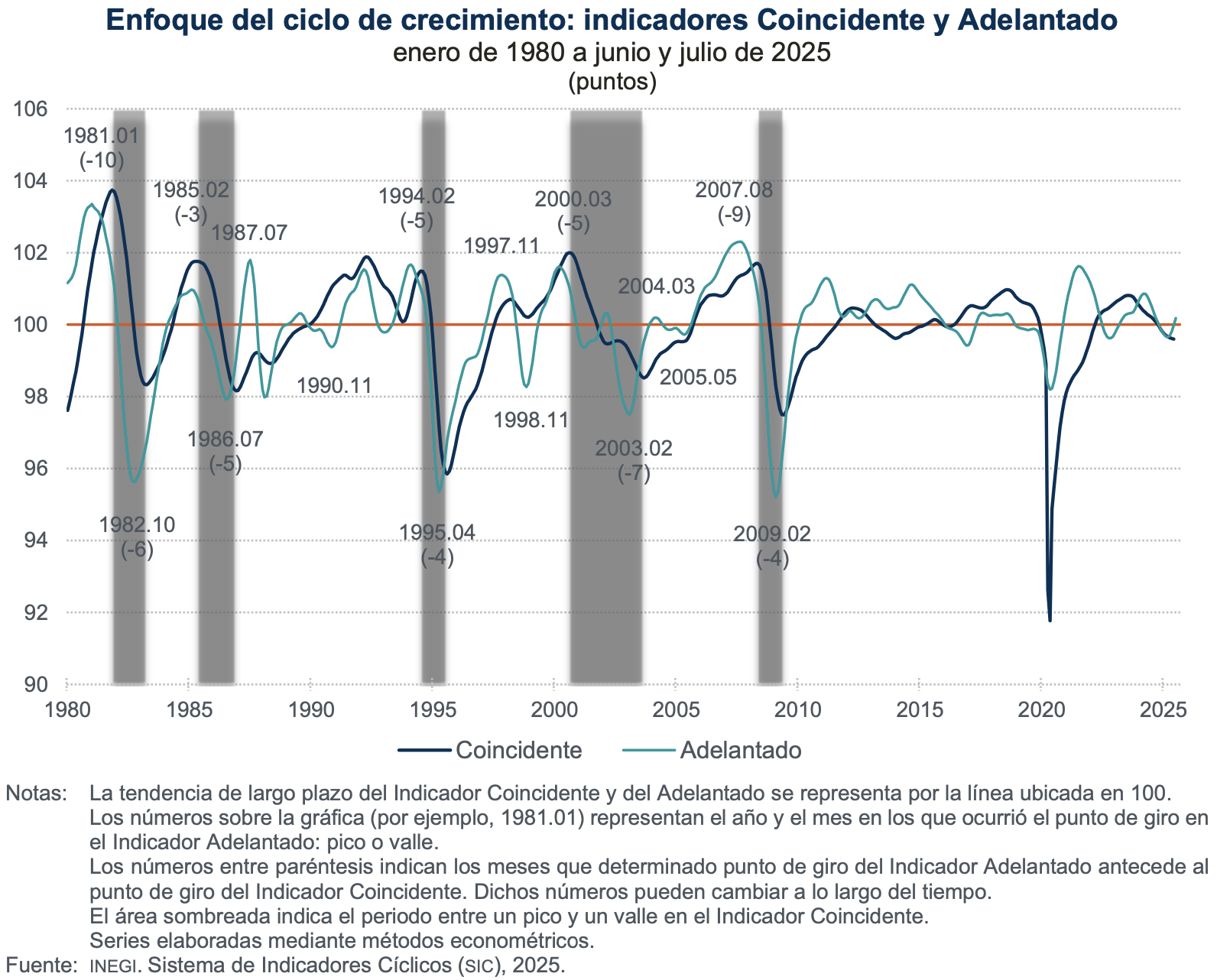 El Indicador Coincidente se situó, en junio de 2025, por debajo de su tendencia de largo plazo y registró una disminución de 0.01 puntos, con respecto a mayo.