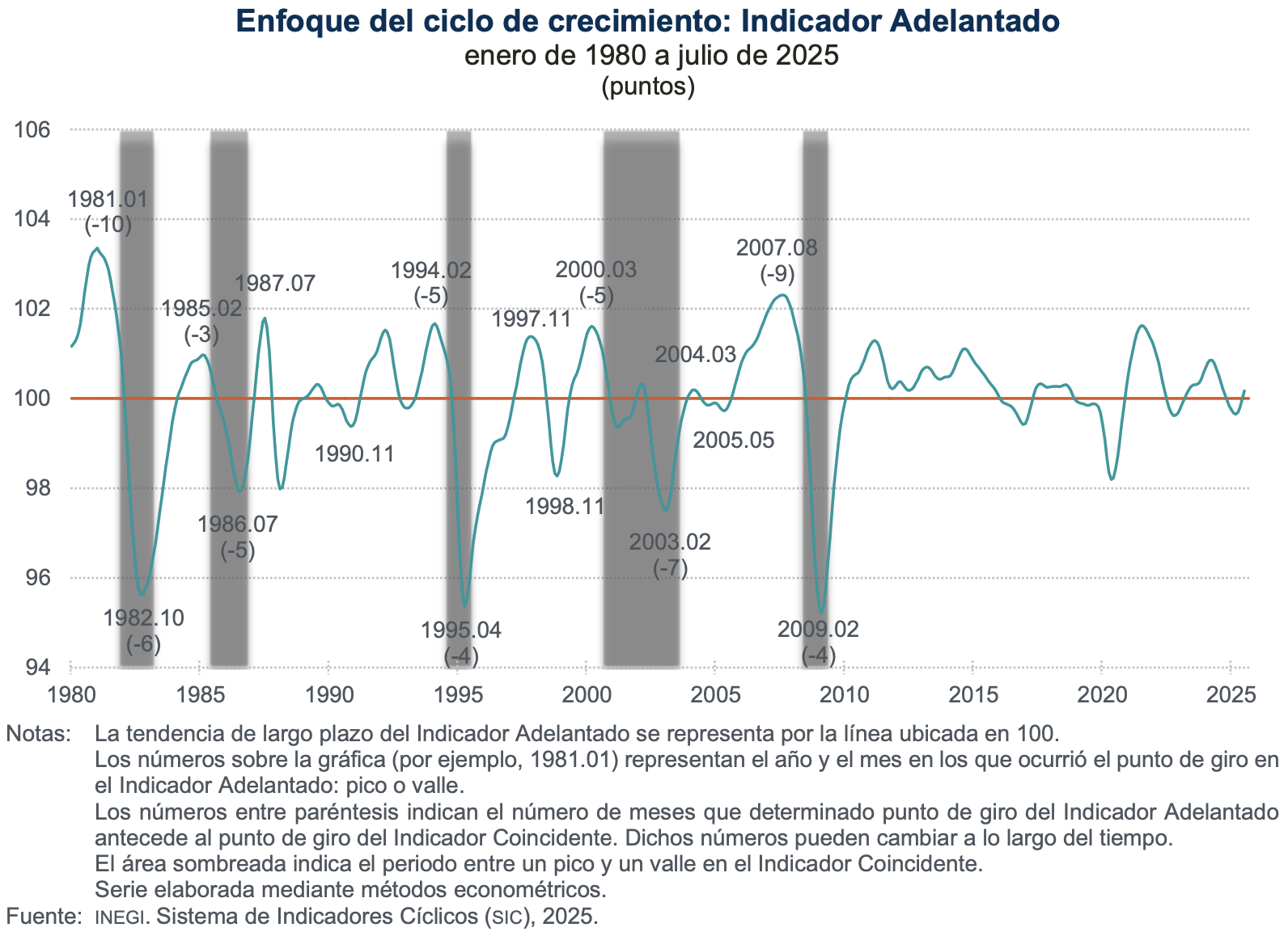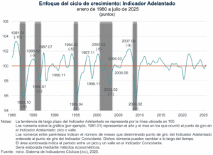 En julio de 2025, el Indicador Adelantado se posicionó por arriba de su tendencia de largo plazo y reportó una variación de 0.19 puntos, con relación a junio, informó el Instituto Nacional de Estadística y Geografía (Inegi).