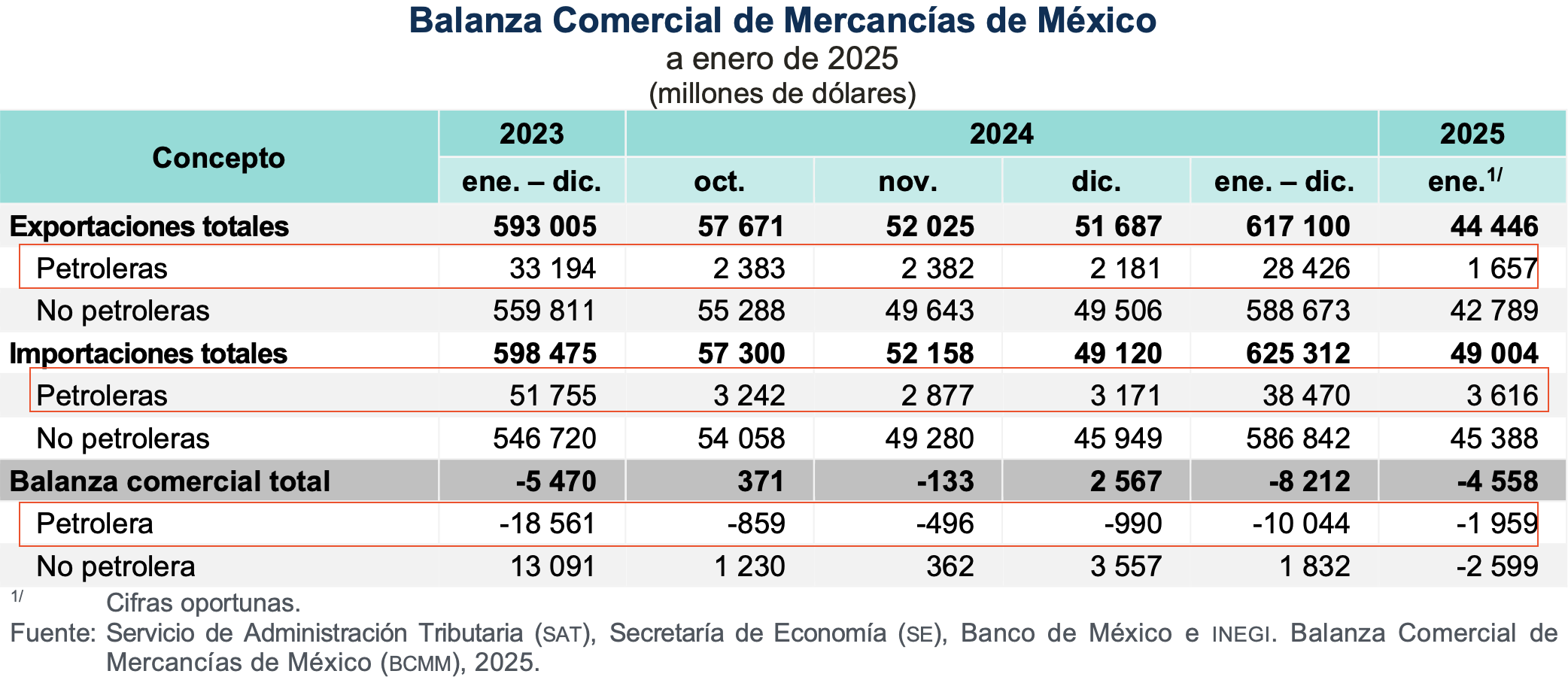BALANZA COMERCIAL DE MERCANCÍAS DE MÉXICO. Enero 2025