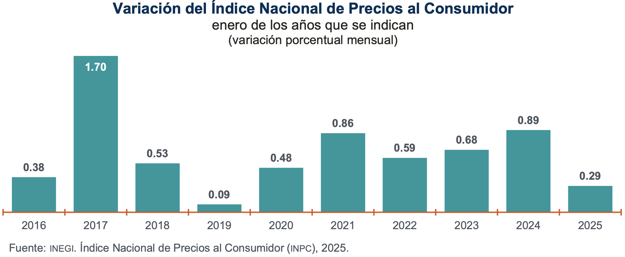 Inflación de 0.29% en enero de 2025, el nivel más bajo en seis años