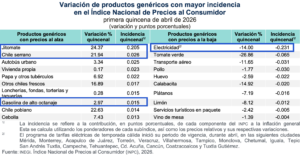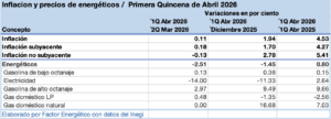 Etiquetas: inflación primera quincena de abril 2026precio de gasolina premiumprecios de energéticostarifas de electricidad