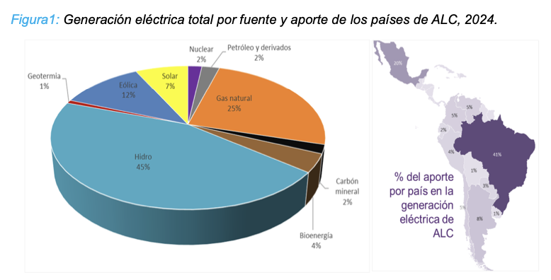 En el reporte: la Generación Eléctrica en América Latina y el Caribe (ALC), indica que el desglose de la generación eléctrica por fuente en 2024: