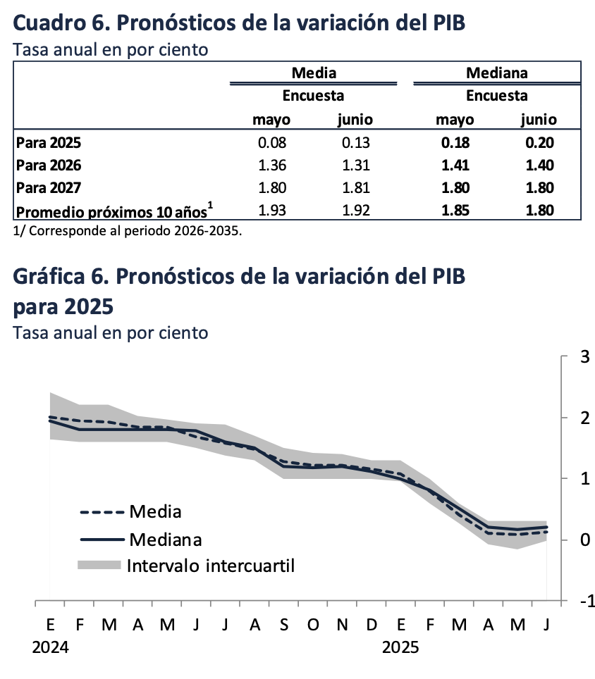 La inseguridad y los aranceles de Trump tienen un efecto negativo en la economía, que la expectativa de crecimiento para el 2025 es de 0.20%, mientras que para el 2026 es de 1.40%.