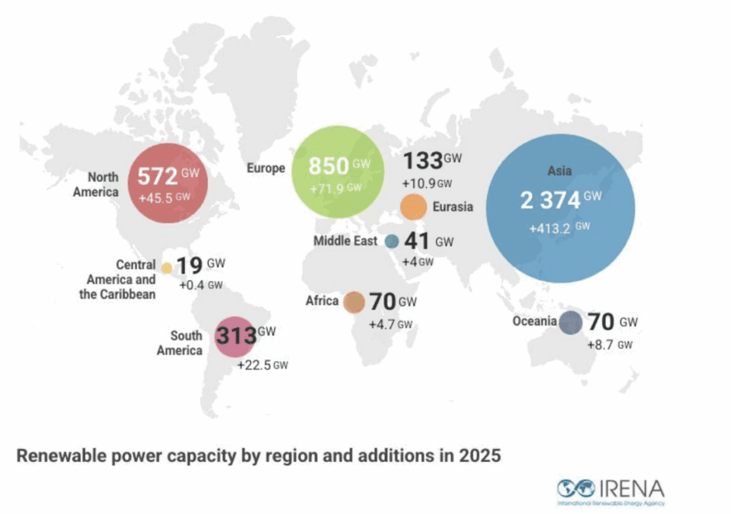Abu Dabi, Emiratos Árabes Unidos, 10 de julio de 2025 – Las estadísticas de energía renovable 2025 publicadas  por la Agencia Internacional de Energías Renovables (IRENA) muestran que, a pesar de que la capacidad de energías renovables crecerá más del 15 % en 2024, la brecha de crecimiento se amplía entre las regiones.