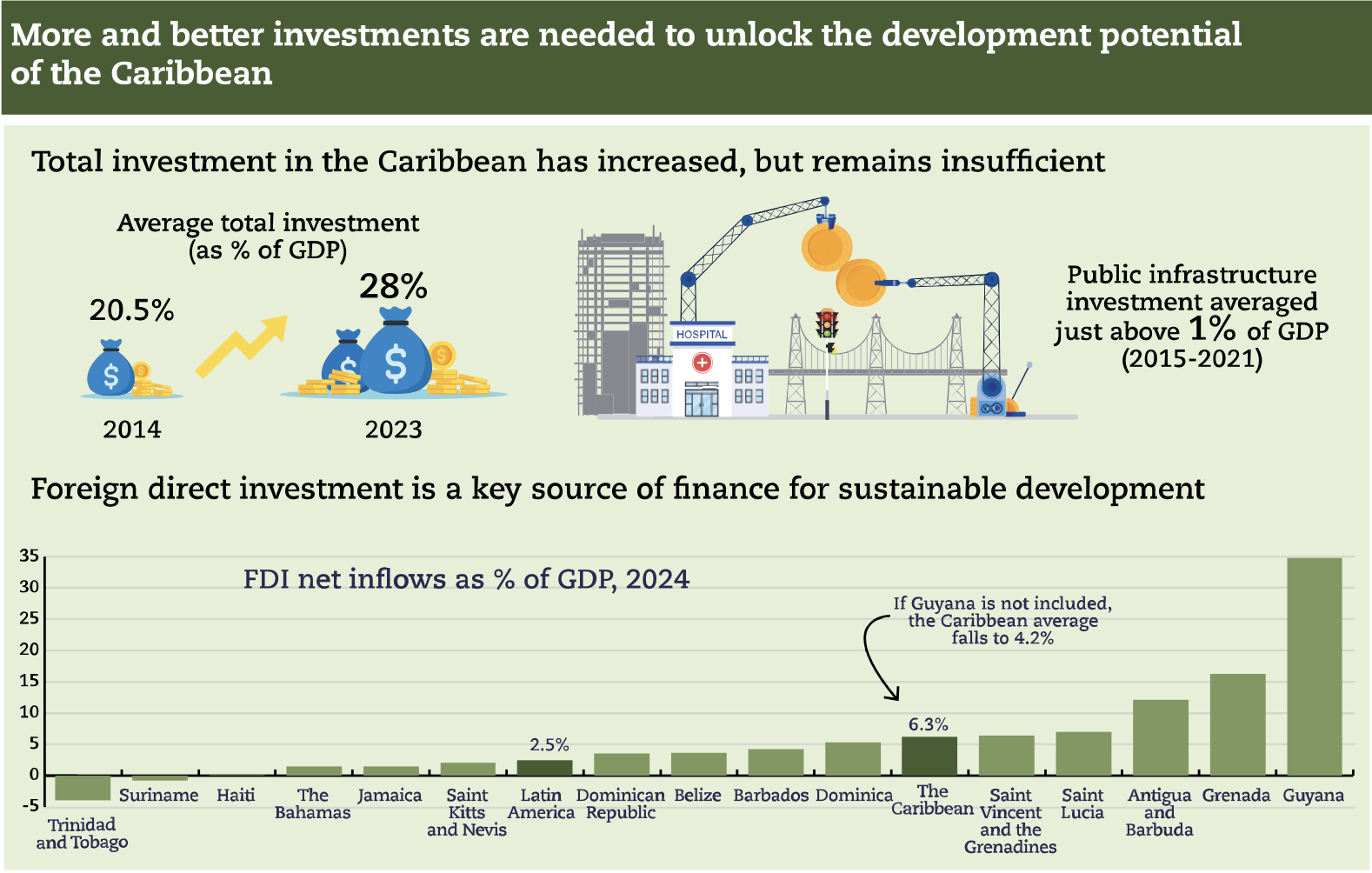 PUERTO ESPAÑA, Trinidad y Tobago — Los países del Caribe necesitan una mayor inversión para reforzar su resiliencia, subsanar deficiencias en materia de infraestructura y alcanzar un crecimiento sostenible, según un nuevo informe conjunto del Grupo Banco Interamericano de Desarrollo (Grupo BID) y la Organización para la Cooperación y el Desarrollo Económicos (OCDE).