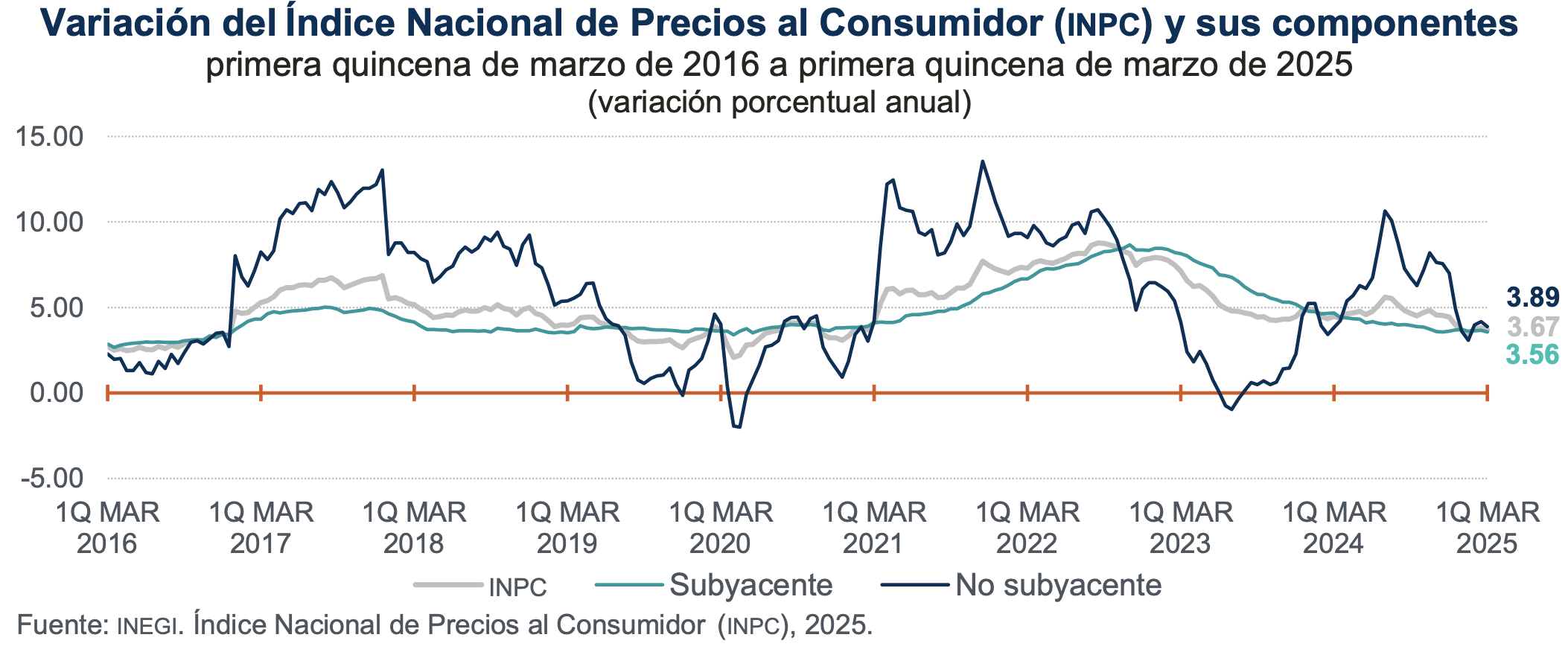 Alejandro Javier Saldaña Brito, director de análisis de BX+, indica que la inflación interanual se ha mantenido debajo del 4% desde la 2Q diciembre y fue su menor variación en las últimas tres lecturas. El subyacente se moderó gracias a servicios sin vivienda y educación. Ello pudo deberse a una alta base, pues este año la Semana Santa se celebra después que en 2024.