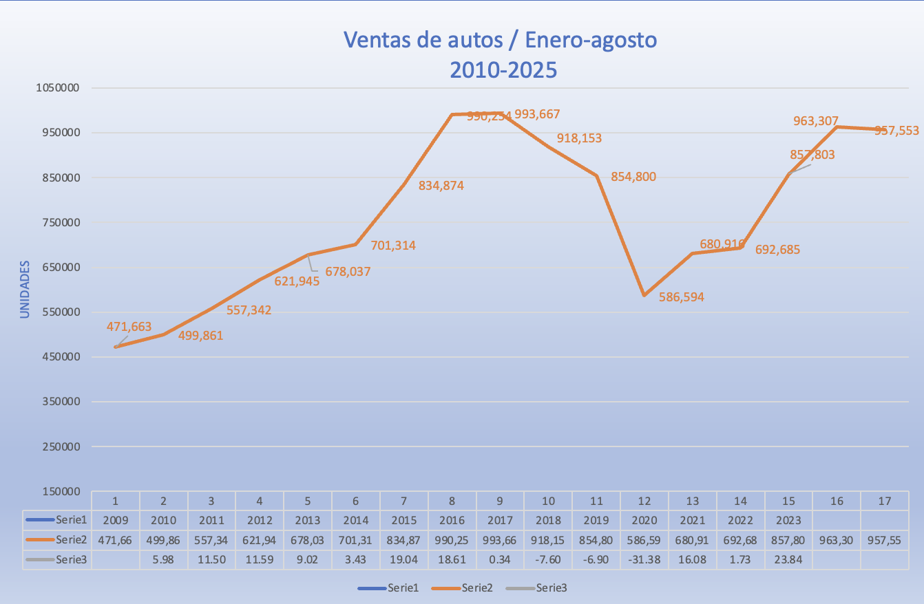 Las ventas de agosto 124,161 unidades es un número menor si las comparamos con agosto del año pasado -127,918- y contra las ventas de julio de este mismo año -124,482-.