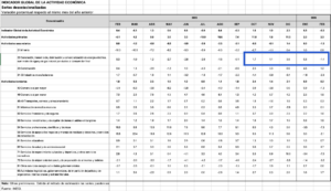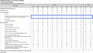 Por componente, las actividades secundarias incrementaron 0.4 %, mientras que las terciarias descendieron 0.1 % y las primarias, 0.3 % a tasa mensual. A tasa anual, las actividades secundarias disminuyeron 1.3 por ciento. Las terciarias aumentaron 0.2 % y las primarias, 2.3 %.