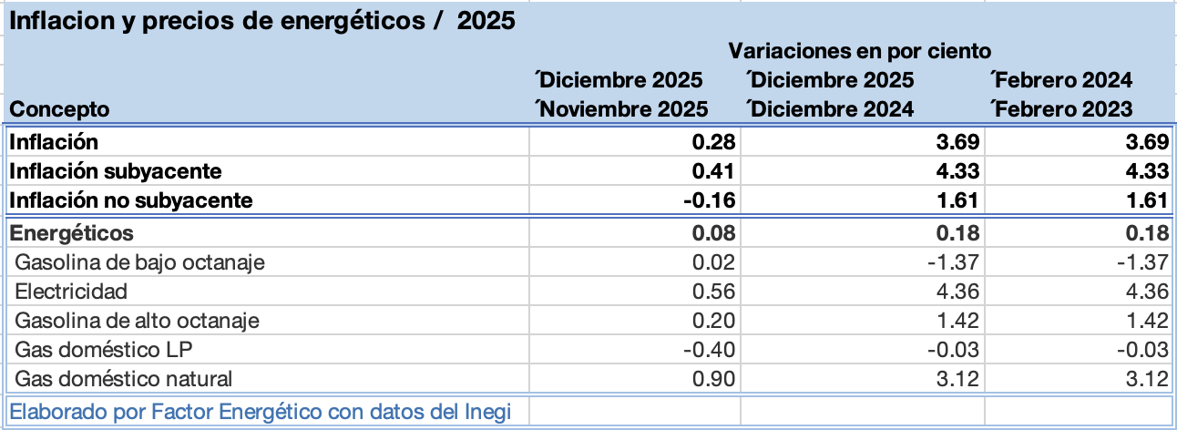 La política de “gestión” de precios promedio de los energéticos del gobierno federal tuvieron éxito en el 2025, reportan un avance de 0.08% en el 2025 con una inflación de 3.56% en el año.